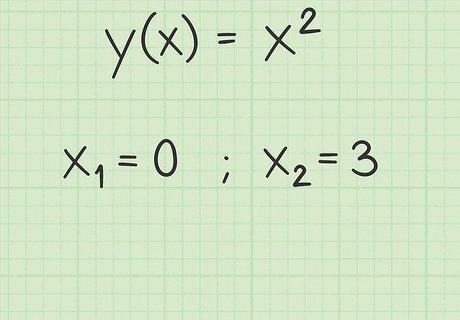 Select values of x. Finding the average rate of change of a function means measuring the value of the function at two different points along the x-axis. Select one value of x where you wish to begin measuring, and then determine how far along the axis you wish to advance. Depending on your purposes, you may choose a wider or narrower range of x values to measure. For this exercise, select the first x-value at 0 and the second x-value at 3.