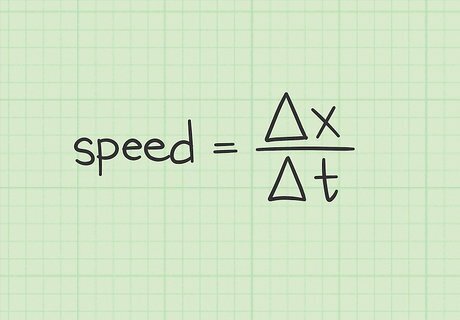 Know the formula for calculating average speed. Suppose you want to know the average speed of travel, but you do not have a speedometer. It is possible to calculate speed with some basic measurements and calculations. The average speed of any object is found by dividing the change in position by the change in time. This can be written mathematically as: speed = Δ x Δ t {\displaystyle {\text{speed}}={\frac {\Delta x}{\Delta t}}} {\text{speed}}={\frac {\Delta x}{\Delta t}} In this function, Δ x {\displaystyle \Delta x} \Delta x represents the change in position or the distance traveled. The denominator Δ t {\displaystyle \Delta t} \Delta t represents the change in time.