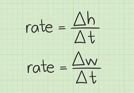 Understand the formula for measuring average growth rates. For things that grow, whether in height or weight, you can measure the rate of growth by finding the change in whatever quality you wish to measure, divided by the time. This formula can be expressed mathematically as: rate = Δ h Δ t {\displaystyle {\text{rate}}={\frac {\Delta h}{\Delta t}}} {\text{rate}}={\frac {\Delta h}{\Delta t}} or Δ w Δ t {\displaystyle {\frac {\Delta w}{\Delta t}}} {\frac {\Delta w}{\Delta t}} In these two examples, h {\displaystyle h} h represents the height and w {\displaystyle w} w represents weight. In both of these, t {\displaystyle t} t is for the elapsed time.