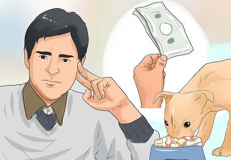 Figure out how much money you can afford to spend on food for the dog. There are a lot of expenses that come along with a dog. One expense that varies depending on the breed of dog you have is the cost of food. It is essential to buy a high quality food, and by default these are not the cheapest foods on the market. If you have a limited budget, don't adopt a large dog and economize by buying cheaper food. Instead, adopt a smaller dog and buy a good quality diet.
