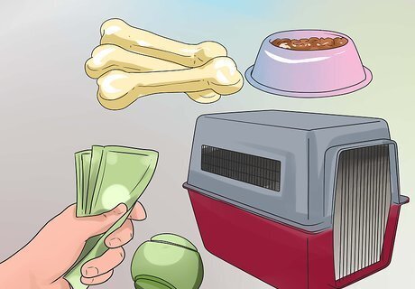 Purchase the necessary equipment you need to look care for the dog. This includes a collar and leash, food and water bowls, food, a crate, a comfortable bed, and puppy pads if the dog is not house broken. You will also need to get grooming tools, vitamins, and toys as well. Also read up on dog training methods using reward, since you want to start training your dog as soon as it gets home, by showing it where the toilet spot is and praising it for performing there.