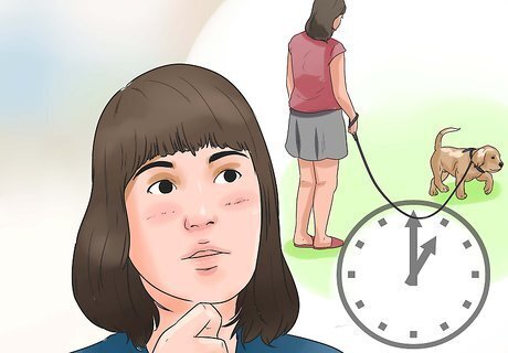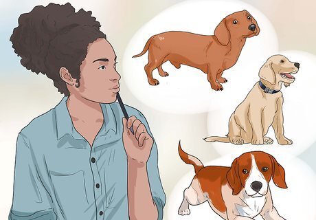 Decide how much time you have each day to walk the dog. This should narrow down your list of potential types of dogs. If your time is limited then don't choose a large dog or a breed that is renowned for needing a lot of exercise. Remember some small dogs, such as many of the terriers, originated as working dogs, which means they are able to run all day without tiring. Bear in mind if you don't give the right amount of exercise the dog may become bored, which leads to destructive or antisocial behavior, or they may become overweight.