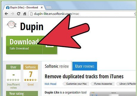 Use Dupin Lite for Mac OS X. Run the Dupin Lite program. In the upper-left corner, select the library that you want to search for duplicates. Select the criteria that Dupin Lite will compare to determine if the songs are duplicates. Click the Filter button to choose which copy will be kept on the computer. You can choose to keep the oldest, the most played, the highest quality, and more. Click the Get Dupes button, a list will be returned of all of your duplicate tracks. The checked tracks will be kept, and were checked according to your Filter settings. The rest can be purged.