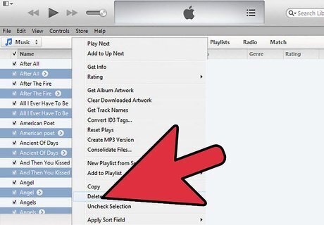 Delete the duplicates. If you've sorted the list and can select a large chunk of songs at once, click the first one on the list, hold the Shift key, and then click the last one. The Entire range will be selected. Press the Delete key on your keyboard to remove them from your library.