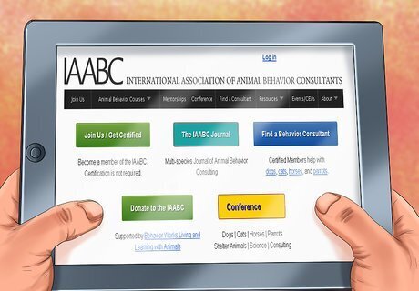 Visit an animal behavior expert. If a medical problem is not causing your older dog's aggression, then a behavioral issue could be the cause. Your vet may refer you to a qualified animal behavior expert who can conduct a more detailed behavioral assessment of your dog. Animal behavior experts have various qualifications, including Certified Applied Animal Behaviorist and board certification in veterinary behavior. Use the website http://iaabc.org/consultants to find a qualified animal behaviorist in your area.