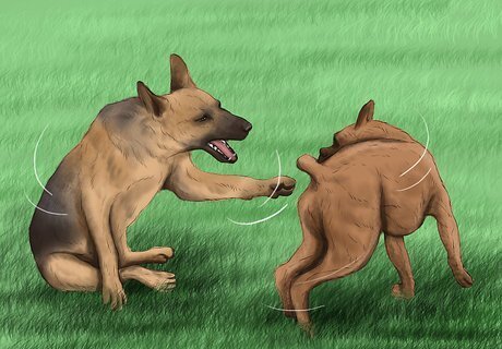 Watch how your dog interacts with other dogs. Aggression in older dogs can occur in multi-dog households. If your dogs are of different ages, the younger one may start challenging the dominance of the older one. In turn, the older dog may be aggressive toward the younger dog to try to maintain its dominant position. Aggression can also occur between older and younger dogs because the older dog is no longer clearly communicating with the younger dog, possibly because it's physically unable to do so. Without proper social signals, aggression could occur between the dogs.