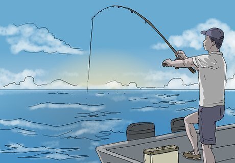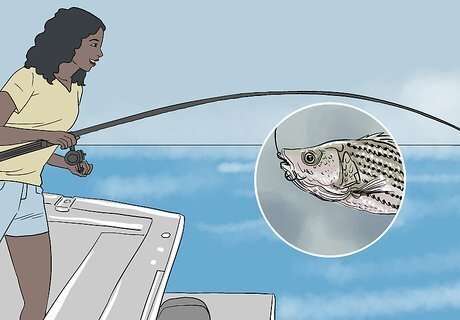 Reel in the striped bass. As soon as you feel the bass grab the eel, bow the fishing rod til it's parallel with the water. This will prevent the striper from feeling the tension in the eel and becoming spooked. However, if you’re using circle hooks, you should reel the line in at a constant rate in order to hook the fish. You can set the hook as soon as the line goes taut and reel the fish in immediately, or you can allow the fish to run for 5 to 10 seconds (keeping the line slack) before setting the hook.