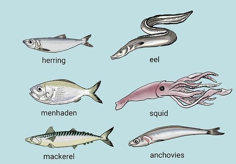 Choose the right bait. Striped Bass are opportunistic feeders who may be caught using a wide range of bait. Live bait such as herring, menhaden, mackerel, eels, squid, clams, anchovies, bloodworms, shad, nightcrawlers and sandworms all make great bait for striped bass fishing. You can find these baits at just about any local fishing bait and tackle shop. The type of bait that will bring you the most success will depend on the location you intend to fish in. If you're unfamiliar with the body of water you'll be fishing, consult with a local bait and tackle shop to find out what type of bait they recommend. You can also catch striped bass using a lure that resembles the forage base in the area where you'll be fishing. These lures can be made from plastic, wood, metal, resins or rubber.