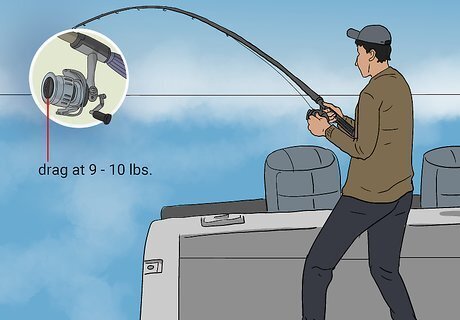 Set the drag at 9–10 pounds (4.1–4.5 kg) for the strike. Keep the boat moving forward in the initial moments after a strike in order to achieve a good hook set.