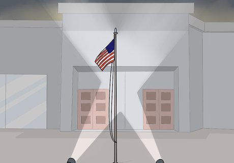 When you hoist the flag from a pole, for example, hang it so the stars are on top and the flag is at the very top of the flagpole, and don't forget to take it down again at night. By following these guidelines, you'll show the flag proper respect and honor.