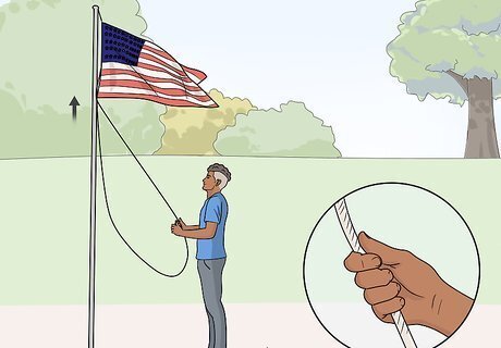 Hoist the flag briskly to the top of the pole. Once the flag is attached, pull the flagpole rope and raise it. Pull the rope briskly so the flag rises quickly. Continue pulling until the flag reaches the very top of the pole. Always display the flag at the top of the pole like this. The only exception to this rule is when the flag is at half-staff for a day of remembrance. These are ordered by the president or state governors.