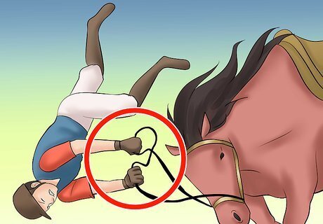 Be prepared for an emergency. Always be aware of your surroundings. If another rider falls off their horse, dismount immediately and hold your horse, trying to keep him calm. Know where the first aid kit is.