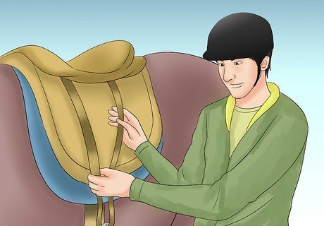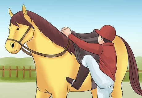 Adjust your stirrups and/or girth either from the ground or in the middle of the arena. If you need to adjust your girth or your stirrups, always do so in a place that is not blocking other riders. Try to be fairly quick about adjusting your girth and stirrups.