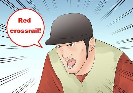 Let other riders know where you are going. This applies especially in situations where you might be jumping or turning unexpectedly. If you are going to jump over a cross-rail in the arena, yell, “Red crossrail!” Be specific, loud, and clear. You can also say, “On your inside!” to a rider you’re passing.