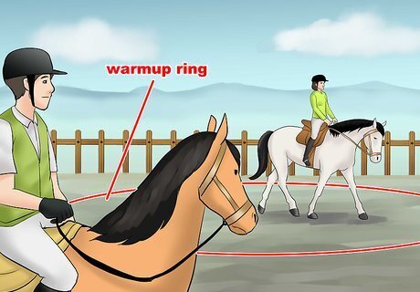 Do not enter the warmup ring unless you are competing. The only people in the warmup ring at a show should be the people who are competing. Do not bring your horse into the warmup ring if he is not competing, even if you are and are riding a different horse.