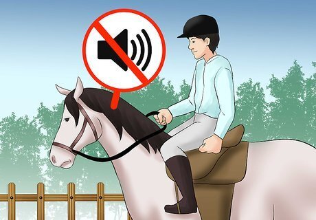 Give only quiet commands to your horse. Many horses could get spooked or upset if you yell at your horse, smack your horse loudly with the whip, or give wild hand gestures in an effort to get your horse to move. Be quiet and respectful when giving commands to your horse. Do not yell or make loud noises.