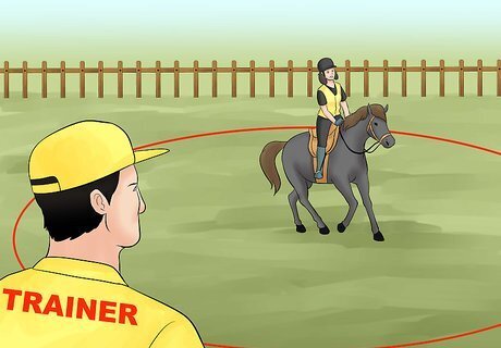 Do not allow your trainer to come into the ring with you. Your trainer should be on the outside of the ring, giving you directions. However, do not stop on the rail to talk to your trainer. Other people may be riding in the ring, and you should try not to be disruptive.