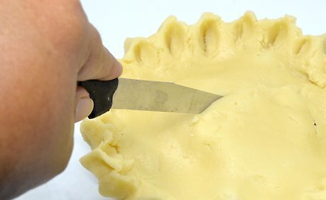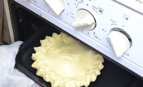Chill the pie crust and filling. If you are making a two-crust pie (one crust beneath the filling, and one crust on top), roll out both parts of the crust as usual. Press the lower crust into the pie pan, and gently set the top crust onto a sheet of wax paper. Put both the pan (with the lower crust) and the wax paper sheet (with the top crust) into the refrigerator until both halves of the crust are completely chilled. Make the pie filling, and put that in the refrigerator to chill as well.