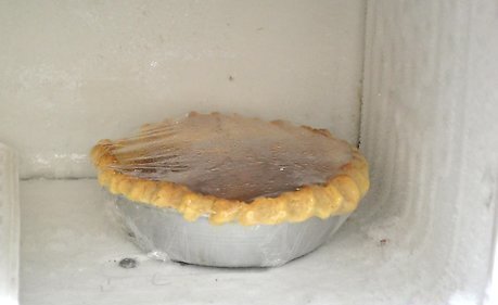 Check your frozen pies occasionally to be sure the containers remain airtight. If the containers come open, the pies may receive freezer burn or may pick up a bad taste or smell from the freezer. Fruit or nut pies can stay frozen for a relatively long time. They will keep in your freezer for up to 4 months. If you have a deep freeze, it will keep your pies safely frozen for a longer period of time.