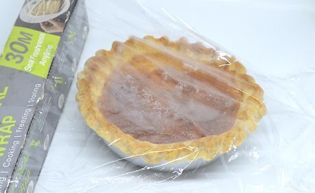 Wrap the pie in plastic wrap to keep it air-tight. Two to three layers should be sufficient. To make sure that your pie is airtight and will freeze well, you should further protect it by placing the pie inside two large ziplock bags. Make sure to squeeze all of the air out of the plastic wrap and ziplock bags when you put the pie in the freezer.