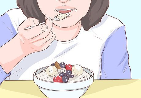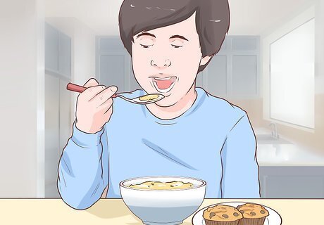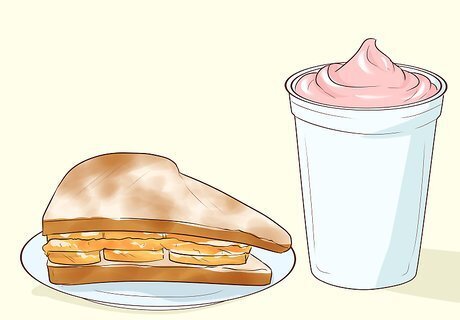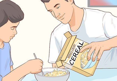 Give your kids carbs. Carbohydrates — or “carbs” — give your kids the energy they need to perform at the top of their game. Carbohydrates are available in abundance in foods like brown rice, whole-grain cereals and breads, and starchy vegetables. They might enjoy vegetables like potatoes, sweet potatoes, corn and peas. Try a small baked potato or sweet potato with cinnamon. Some athletes try “carb-loading” — eating an excess of carbs before an athletic contest or event. There’s no need to give your kids more carbs than they need. Don’t insist that your child eats a certain volume of carbs before their athletic contest. Kids are good at knowing their limits and should eat until they feel full before an athletic event. Many of the high-protein foods listed in the step above also have high carbohydrate content, which make them good choices.
