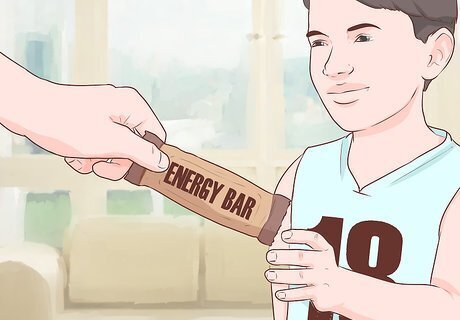 Encourage your child to snack during the game. It is not necessary to snack during games lasting an hour or less. But if your child’s game lasts more than an hour — and especially if they’re pushing themselves hard — they might want a small snack. Provide your child with an energy bar, a banana, or a small box of raisins in the event you expect their game to last over an hour. Remind your child that they are not obligated to eat the snack, but can if they get hungry.