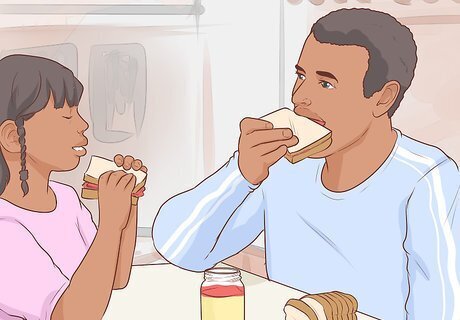 Eat with your child. Both before and after your child’s game, dine with them. Kids tend to eat healthier when they dine at home with their parents. When your child sees you making healthy dining choices, they will do the same. Plus, dining with your child athlete will give you two the chance to bond. Busy parents might find it difficult to coordinate their schedule so that they can eat with their child every night, or even before and after every game. Set time in your schedule to do so, and eliminate or reschedule obligations that are less important like organizing your stamp collection or folding the laundry. Use a daily planner to write down the dates of your kid’s athletic events so that you will be sure to eat with your child and see their match.
