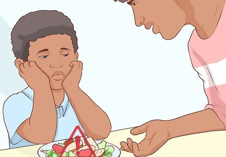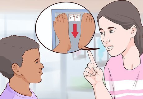 Discourage diets. Unless your child has been instructed by a medical professional to lose weight, your child should not be on a diet. Likewise, encouraging or allowing your child to gain weight in order to “bulk up” for a particular athletic activity is a bad idea. Kids need a balanced, healthy diet in order to grow strong. If your child dramatically increases or reduces their calorie intake significantly — or adopts a fad diet like a high-protein diet — this could negatively impact their health.