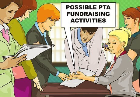 Establish channels of communication. Communication is perhaps the most important part of successfully fundraising for a PTA. Without communication, people won’t be able to effectively organize and plan. Hold regular PTA meetings. These meetings should be monthly or biweekly. In addition, hold meetings of key committees. Committee meetings may meet monthly or more often depending on what they need to do. Create a contact list with email and phone numbers of each member. In addition, create a list of donors and friends of your PTA. Make sure your PTA has a communications secretary – this person oversees sending out emails and making sure people can get in touch with each other.