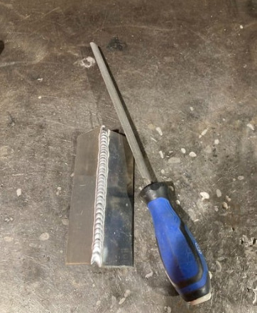Deburr the corner joint. Acquire a metal hand file. Deburr any sharp edges or corners so the joint is smooth to the touch. This will prevent any possibility of injury or cuts. Ensure once completed with deburring to remove welding gloves and run hands over the joint as a general precaution for others' safety.