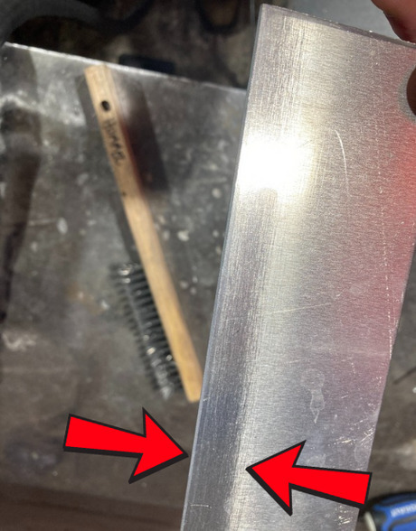 Clean the aluminum coupons. Acquire 1/8” x 2” x 6” aluminum coupons and a stainless-steel wire brush. Brush the edges of both coupons to remove aluminum oxide, which will increase weldability. Weldability is the material's ability to withstand being manipulated by welding processes. Therefore, the easier it is to weld, the higher the weldability. *See tip #2*
