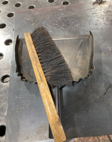 Clean up the work area. Turn off the welder, coil up the torch and ground leads, remove consumables from the torch, and rotate the gas valve so it is perpendicular to the pipe. After all is complete, acquire a broom as well as a dustpan and remove any debris acquired on the work surface. Dump all loose welding debris in a scrap bin.