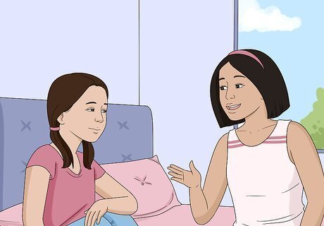 Find a compromise. Try to find a solution that will help you stop fighting. Keep in mind that you both may have to let go of something you want to come to an agreement. This can make you or your sister upset. If you’re both having trouble staying calm, you may need a parent to act as a mediator. Examples of compromises include: Taking turns using your favorite toy Sharing a piece of clothing that you both like to wear Taking your sister along sometimes when you hang out with your friends