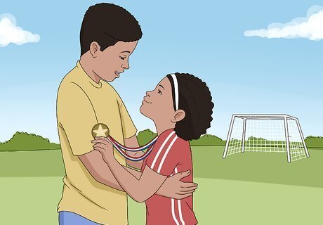 Congratulate your sister on her achievements. When you congratulate your sister on something, you’re showing her that you admire her. She will enjoy knowing that you’re impressed by her, especially if she looks up to you. Someday she may even start congratulating you in return! Some examples of achievements include: Graduating into a new grade Doing well on a test Successfully climbing a tall tree Doing well at a dance recital