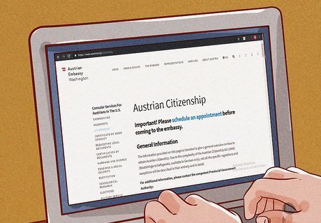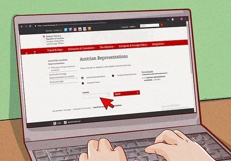 Complete an application for a visa. Go to the nearest Austrian embassy or consulate in your home country and ask for a visa application. Some Austrian embassies may have applications available to download on their websites. On the application, provide information about yourself, your citizenship, and your personal background, as well as your education and employment. Applications for a job-seeker visa are available in German or English. You don't have to demonstrate proficiency in German to get a job-seeker visa. However, you earn additional points if you are proficient in either English or German. If you don't know the location of the nearest Austrian embassy or consulate, you can search at https://www.bmeia.gv.at/en/embassies-consulates/search-for-austrian-representations/.
