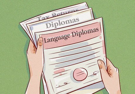 Gather proof of your regular earnings. To be eligible for citizenship, you must be able to show that you are able to prove that you can cover your living expenses without relying on government assistance. Generally, you'll need proof of income for 6 years from the date you apply for citizenship. You can't have any eviction pending or an eviction order within the 18 months before you apply for citizenship.