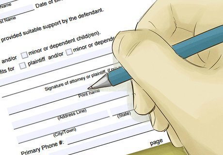 Complete the forms. The typical motion/petition form will ask for personal identification information (your name, address, phone number) as well as information about the children (names, date of birth, and address). You will also need to name the other parent and list their address. The financial affidavit/worksheet will require information on assets and finances. For example, you may be asked for gross weekly income, health insurance and child care costs, and information on other support obligations.