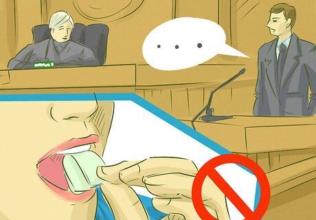 Speak respectfully. When addressing the judge, say “Your Honor.” Stand when speaking to him or her. Do not chew gum while in court, no matter how nervous you may be. Also do not bring in food or drinks, and turn cell phones off.