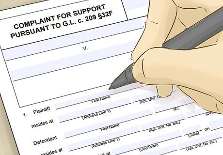 Get the right forms. You will start an action for child support by filing a petition or motion. Your state should have pre-printed "fill in the blank" forms. The form will go by a different name depending on the state and court. In Massachusetts, it is called a “Complaint for Support.” In Texas, the form is called “Petition in Suit Affecting the Parent-Child Relationship.” Ask the court clerk for the appropriate form. You may also need to fill out other forms. In particular, you will need a worksheet on which you list assets, income, expenses, etc. This worksheet goes by different names. In Massachusetts, it is called the “Child Support Guidelines Worksheet.” In New York it is called a “Financial Disclosure Affidavit.” If you are requesting child support as part of a divorce, then you should have the form in your divorce packet already. If you and the other parent have come to an agreement, then you will file a “Joint Stipulation.” Ask the clerk if there is a particular form for joint stipulations.
