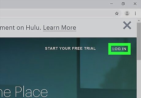 Click Log in and sign in with your email address and password. It's the top-right corner of the page. Sign in with your email address and password and then click Log In to select the main account user on the "Who's Watching" page. You can also click "Log in with Facebook" to sign in with your Facebook account instead. If you don't have a Hulu account, click Start Your Free Trial to create one.