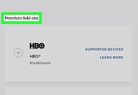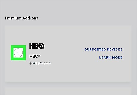 Click ⨁ next to "HBO". Click the plus sign "+" in a circle located on the right-side of the page next to "ADD THIS" of the HBO Add-On. The plus sign will turn into a checkmark to indicate it's been selected.