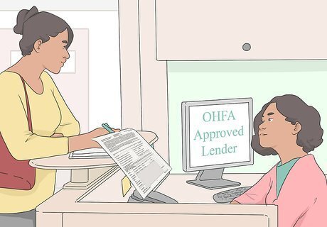 Submit an application to an OHFA-approved lender. OHFA works with banks, credit unions, and mortgage companies throughout the state to offer and service loans. Try to get quotes from at least 2 or 3 lenders so you can compare. Choose the lender that not only makes the best offer but also has the best customer service. To find an approved lender near you, go to https://myohiohome.org/lenders/default.aspx and select your county from the drop-down menu. You can also call the OHFA at 888-362-6432 to get the names of lenders near you or find out more about the application process.