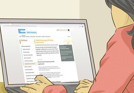 Demonstrate English proficiency, if necessary. All UC schools consider a solid command of English crucial to any student’s success. If your school instruction was given in a language other than English (and if you've taken less than three years of English language classes), you must prove your capability through testing. Proficiency can be demonstrated by earning a minimum score on the Test of English as a Foreign Language (TOEFL) or International English Language Testing System (IELTS). Proficiency can also be demonstrated by earning minimum scores on the ACT Writing section, the SAT Writing section, English AP tests, or IB English Language examinations.