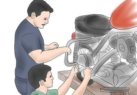 Consider getting a job in a dealership as an assistant mechanic. You can start off doing odd jobs or running around for the head mechanic. Once you have your foot in the door, you can work your way up as you prove your competence as a mechanic. If you become a valued employee, you can ask your employer if there are any motorcycle repair courses in place that you can attend. Your employer may be willing to pay for you to get further training in the field.