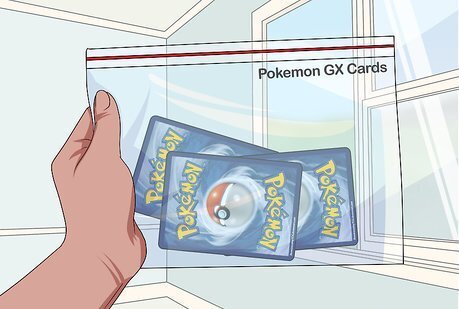 Protect them in a plastic bag. If you don’t want to spend money, putting them in plastic bags is the most simple way of storing them. Be aware, though, that plastic bags are flimsy and can end up with holes in them if they're handled roughly, so put them somewhere safe. Write “Pokémon GX Cards” in marker on the bag. That way you’ll know that that bag holds your GX Pokémon.