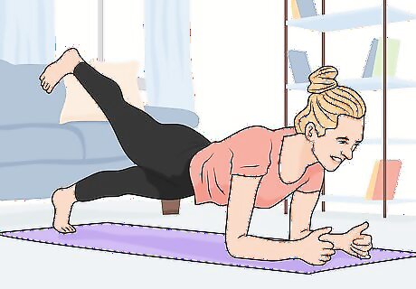 Build up your strength with the pelvic tilt. Work on bulking up your muscles, which can help fill in the extra space that’s caused by your loose skin. To do the pelvic tilt, lay face-up on your back with your knees bent at an angle. Engage your abdominal muscles and lift your hips off the floor for about 10 seconds. Start by doing 5 reps at a time, then work your way up.