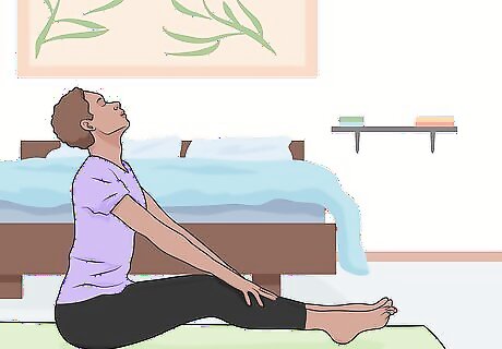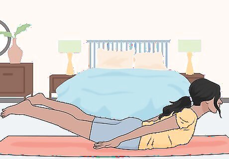 Perform the locust pose as a simple way to stay stretched out. Lie face-down on your stomach while clasping your hands up and behind your back. Raise your legs, head, and shoulders off the mat while anchoring your hips to the floor. As you do this, separate your legs and hold the overall position for at least 3 breaths. Try doing 2-3 reps of this as you’re starting out. This exercise really works your back muscles, and may help improve your posture.