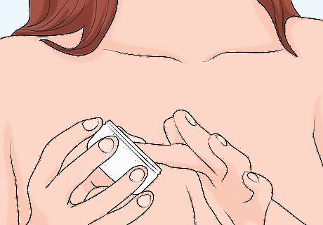 Rub skin-firming products over your excess skin. Visit your local drugstore and search for skin-firming products, like lotions and creams. Keep in mind that these products likely won’t have an instantaneous effect, but they may help tighten your skin a little bit. Rub this product over the loose, affected skin as you get out of the shower, so the cream can be most effective. It’s always best to read the product information for specific instructions and guidance. You need to apply these types of creams on a regular basis to notice results. Unfortunately, the effects won’t be permanent.