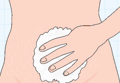 Exfoliate your loose skin while you’re in the shower. Squeeze a small amount of exfoliant on a rag or loofah, then knead the product over the sagging skin. The exfoliant helps remove some of your dead skin cells, which may encourage new, more elastic skin to grow. As a general rule of thumb, only exfoliate the loose skin around 2-3 times per week. You can find exfoliation products at most drugstores or beauty supply shops. Choose a scent that really appeals to you!