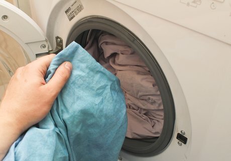 Wash and dry the backdrops. Use a washing machine on a cool setting so that the backdrops do not tear away.